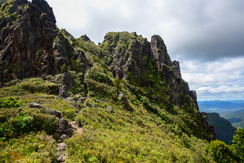 From the hut, the track, a mixture of steps and ladders, climbs steeply for appoximately an hour to the Pinnacles viewing platform . On a clear day, the views are spectacular.