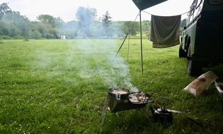 To increase your living space, consider a tarp from a couple of trees to the back of your vehicle, with your tent under it. Shade, shelter and a place to cook make camping much more comfortable. Tarps are an inexpensive means of expanding your camp setup.