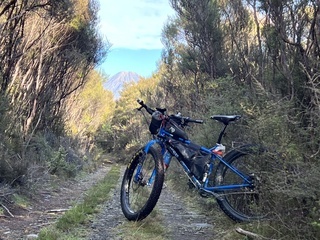 The trail is a 40-minute ride (DOC posted time) on double track. Starting at the viewing bridge car park the trail climbs gently, with an approximate altitude gain of 200 vertical meters.